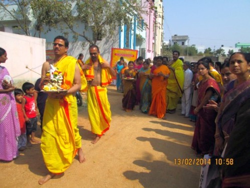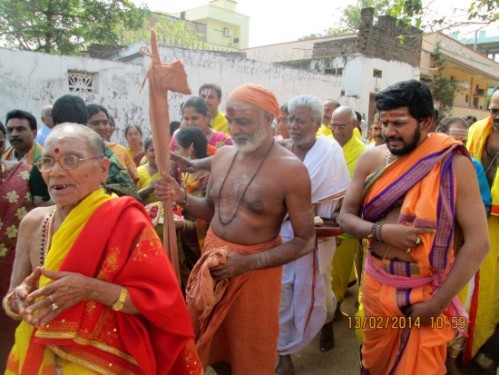 Devotees inviting Shri Shri Shri Madhavananda Saraswathi garu with mangala harathi
