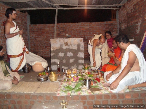 Ganapathi Pooja and Kankana Dharana at the beginning of Lakshmi Ganapathi prathista